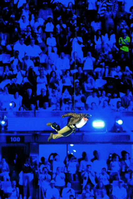 Ο Τομ Κρουζ σε ρόλο αγγελιαφόρου βουτά από την οροφή του σταδίου για να παραλάβει τη σημαία των Ολυμπιακών Αγώνων
