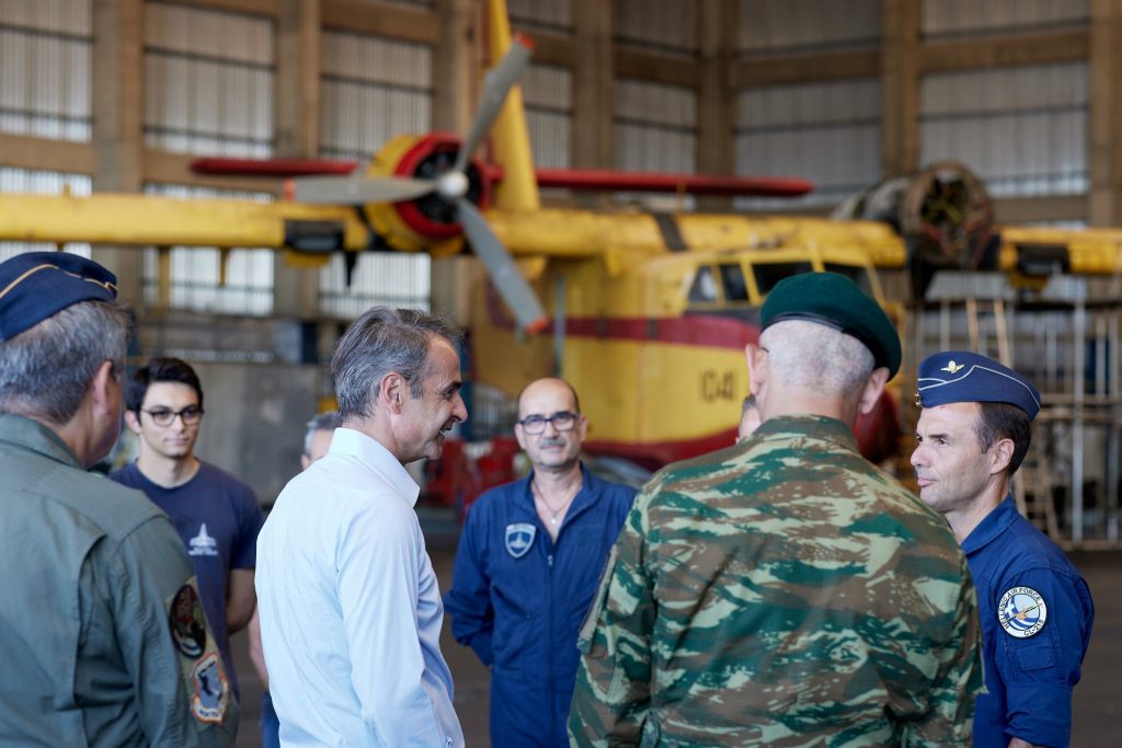 Ο πρωθυπουργός Κυριάκος Μητσοτάκης επισκέφθηκε το πρωί της Τετάρτης (14/08) την Αεροπορική Βάση Ελευσίνας