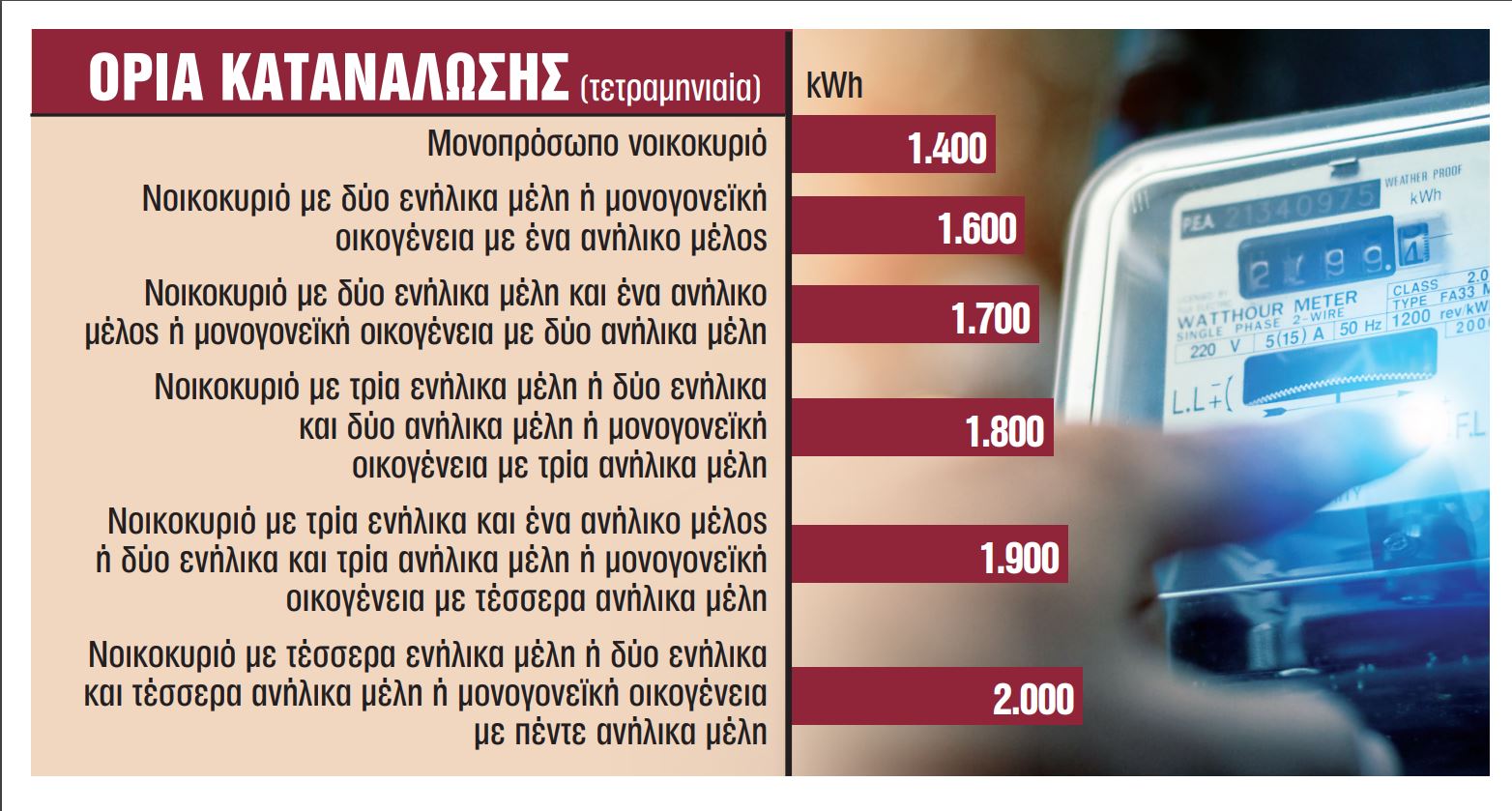 Θα πρέπει να σημειωθεί ότι υπάρχουν δύο κατηγορίες δικαιούχων: Αρχικά στο ΚΟΤ Α’ εντάσσονται όσοι πληρούν τις προϋποθέσεις χορήγησης του Κοινωνικού Εισοδήματος Αλληλεγγύης, ενώ στο ΚΟΤ Β’ εντάσσονται όσα νοικοκυριά δεν ξεπερνούν ετησίως τα εξής ποσά: για μονοπρόσωπο νοικοκυριό τα 9.000 ευρώ, για νοικοκυριό με δύο ενήλικα μέλη ή μονογονεϊκή οικογένεια με ένα ανήλικο μέλος τα 13.500 ευρώ, για νοικοκυριό αποτελούμενο από δύο ενήλικα μέλη και ένα ανήλικο μέλος ή μονογονεϊκή οικογένεια με δύο ανήλικα μέλη τα 15.750 ευρώ, για νοικοκυριό αποτελούμενο από τρία ενήλικα μέλη ή δύο ενήλικα και δύο ανήλικα μέλη ή μονογονεϊκή οικογένεια με τρία ανήλικα μέλη τα 18.000 ευρώ, για νοικοκυριό αποτελούμενο από τρία ενήλικα και ένα ανήλικο μέλος ή δύο ενήλικα και τρία ανήλικα μέλη ή μονογονεϊκή οικογένεια με τέσσερα ανήλικα μέλη τα 24.750 ευρώ.