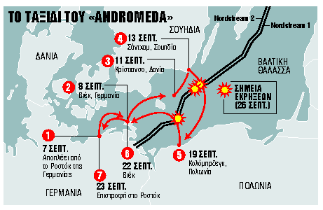 Τι καλύτερο για να κάνει τον Βλαντίμιρ Πούτιν να πληρώσει για την επιθετικότητά του; Σχεδόν τέσσερις μήνες αργότερα, τα ξημερώματα της 26ης Σεπτεμβρίου, σκανδιναβοί σεισμολόγοι έλαβαν σήματα που έδειχναν υποθαλάσσιο σεισμό ή ηφαιστειακή έκρηξη εκατοντάδες μίλια μακριά, κοντά στο νησί Μπόρνχολμ της Δανίας. Προκλήθηκαν από τρεις ισχυρές εκρήξεις και τη μεγαλύτερη καταγεγραμμένη έκλυση φυσικού αερίου, που ισοδυναμεί με τις ετήσιες εκπομπές CO2 της Δανίας.