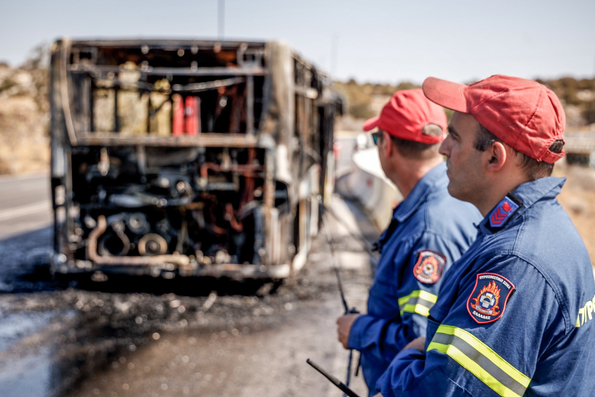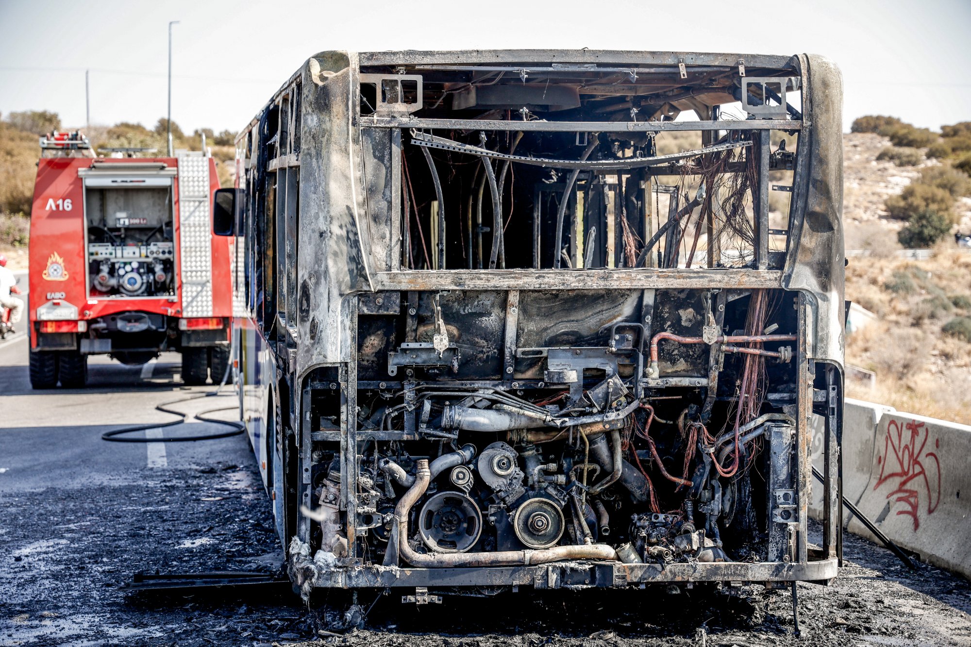 Η φωτιά ξεκίνησε από τον κινητήρα του λεωφορείου και επεκτάθηκε γρήγορα και στο υπόλοιπο όχημα, σύμφωνα με όσα φέρεται να είπε ο οδηγός στους αστυνομικούς.
