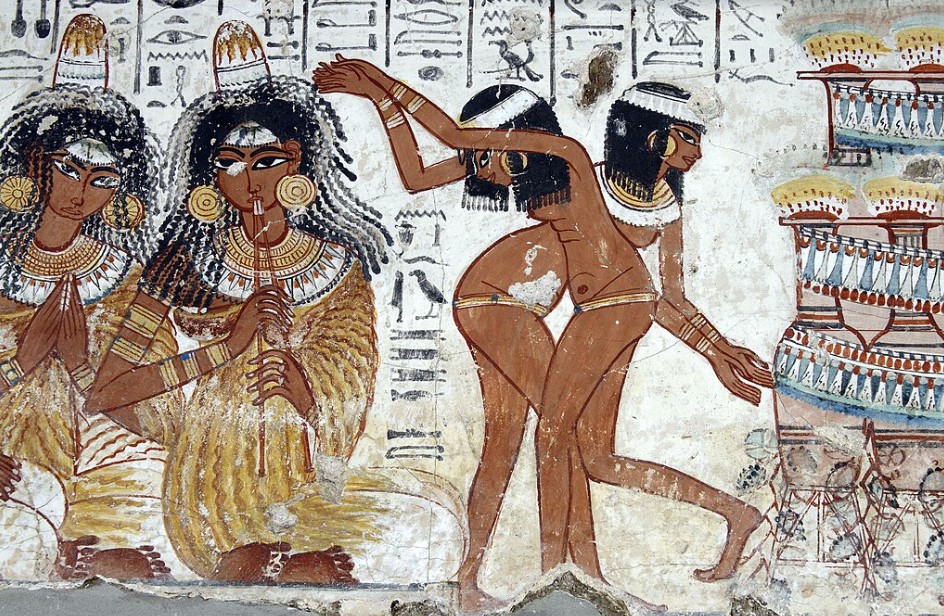 Γυμνές χορεύτριες σε πίνακα από τον τάφο του Nebamun, περ. 1350 π.Χ., Νέο Βασίλειο (Wikipedia)