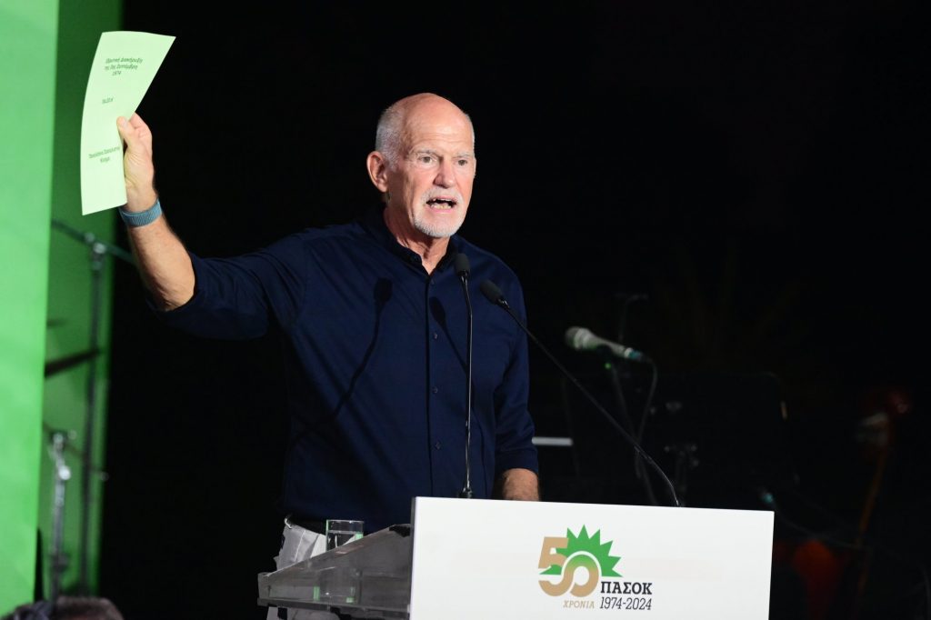 20.28 Στο βήμα ο Γιώργος Παπανδρέου: Να πάρουμε στα χέρια την υπόθεση που λέγεται προοδευτική παράταξη
