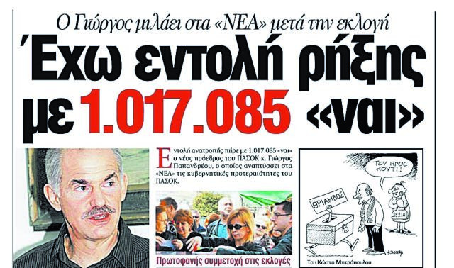Θα επιτρέψουμε στο πελατειακό πολιτικοοικονομικό σύστημα που κρατά σε ομηρεία τη χώρα και τις υγιείς παραγωγικές και δημιουργικές δυνάμεις να συνεχίσει το καταστροφικό έργο του ή θα απαλλαγούμε από συμφέροντα και κατεστημένα που προσθέτουν μεγάλα βάρη στον ελληνικό λαό;