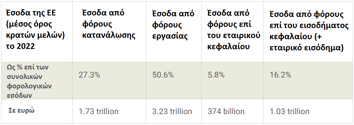 Αναλύοντας η Oxfam, τα πρόσφατα δεδομένα της Eurostat και της Ευρωπαϊκής Επιτροπής, φέρνει στην επιφάνεια την άδικη φορολόγηση που βασίζεται το ευρωπαϊκό εγχείρημα. Το 2022, οι φόροι κατανάλωσης, πχ ΦΠΑ και οι φόροι στην εργασία αποτελούσαν σχεδόν 8 στα 10 ευρώ των συνολικών φορολογικών εσόδων στις χώρες της ΕΕ, ενώ οι φόροι επί του πλούτου συνεισέφεραν λιγότερο από 60 σεντς για κάθε 10 ευρώ που εισπράχθηκε.