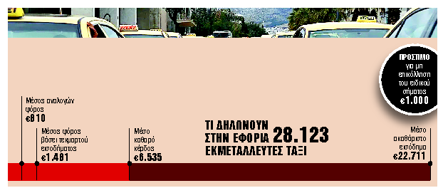 Υπουργείο Οικονομικών και ΑΑΔΕ προωθούν τώρα νέα ρύθμιση για την παραλαβή του αυτοκόλλητου σήματος από τους οδηγούς ταξί με τη σχετική απόφαση να εκδίδεται εντός των ημερών και να ορίζει νέα διαδικασία και νέα προθεσμία για την επικόλληση του σήματος στα οχήματα. Με την υποχρεωτική εγκατάσταση POS στα ταξί για πληρωμές με κάρτα και τα ειδικά αυτοκόλλητα σήματα επιχειρείται να μπει φρένο στα φαινόμενα φοροδιαφυγής και τέλος στις δικαιολογίες που επικαλούνται οδηγοί προκειμένου να αποφύγουν τις συναλλαγές με κάρτα και να πληρωθούν από τους πελάτες τους σε μετρητά. Τα στοιχεία της ΑΑΔΕ δείχνουν ότι οι ιδιοκτήτες και εκμεταλλευτές ταξί δηλώνουν στην Εφορία πολύ χαμηλά εισοδήματα. Στις φετινές φορολογικές δηλώσεις εμφάνισαν μέσο μηνιαίο εισόδημα 545 ευρώ με τους περισσότερους να φορολογούνται με βάση το τεκμαρτό εισόδημα και να καλούνται να πληρώσουν φόρο 1.481 ευρώ κατά μέσο όρο.
