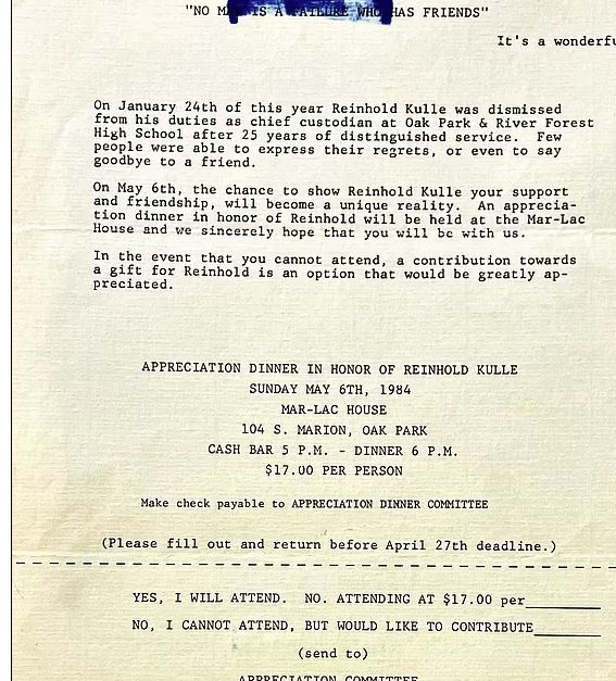 Στην πρόσκληση αναγραφόταν ότι «κανένας άνθρωπος δεν είναι αποτυχημένος που έχει φίλους» και επαίνεσε τον Kulle για «25 χρόνια διακεκριμένης υπηρεσίας».