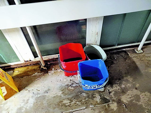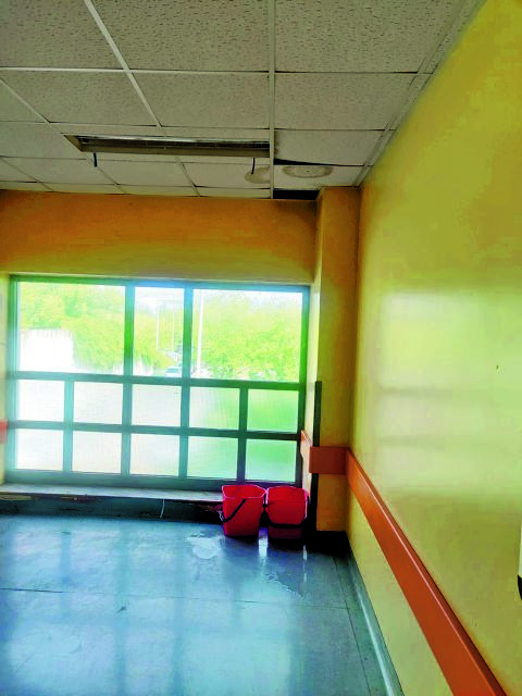 Κουβάδες σε πολλά σημεία των νοσοκομείων, σε διαδρόμους, εντός των θαλάμων ασθενών, γιατί τα νερά πέφτουν από τα ταβάνια