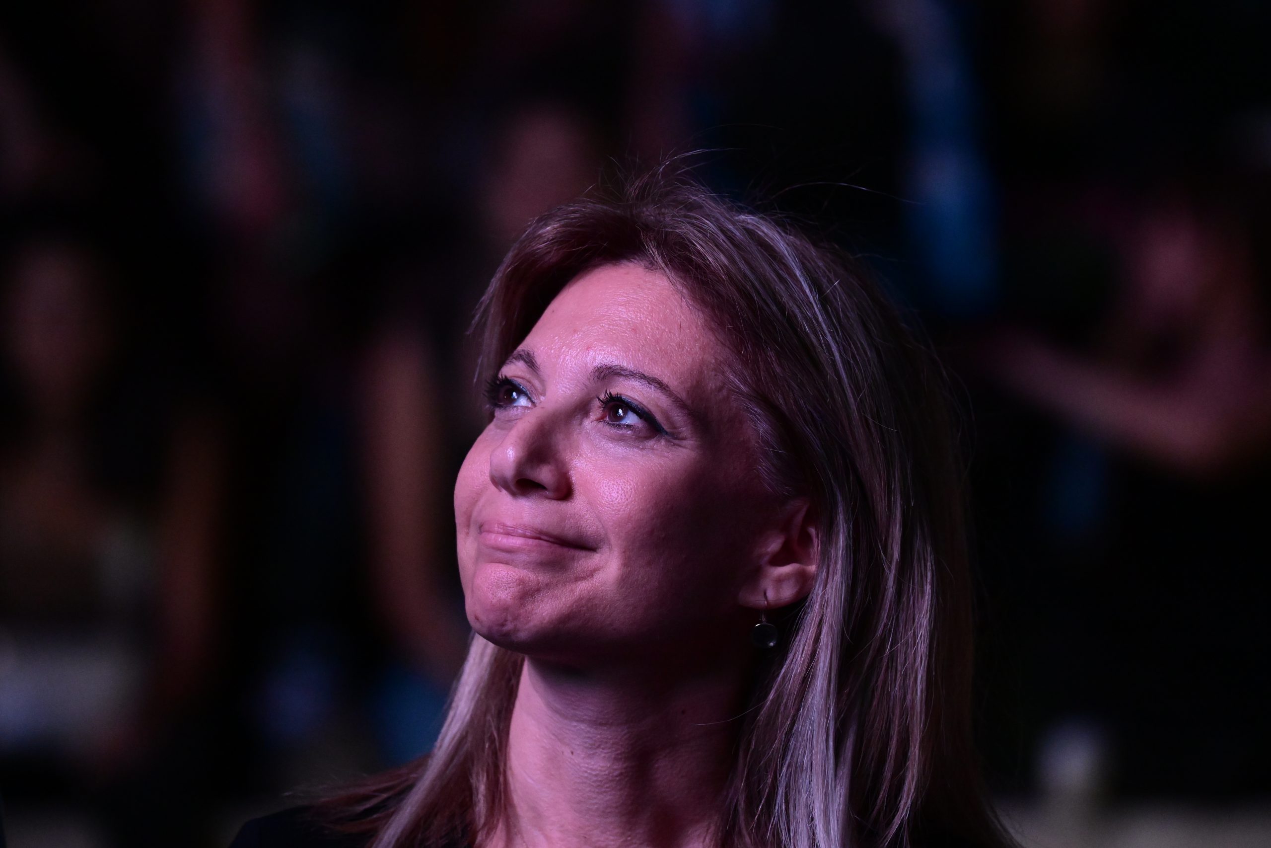 Τότε, οι παρευρισκόμενοι τη διέκοψαν με χειροκροτήματα.