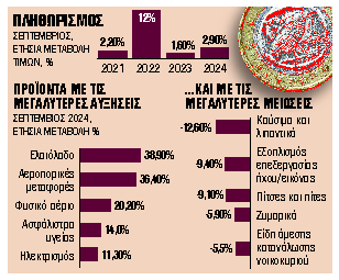 Ο πληθωρισμός του Σεπτεμβρίου επηρεάστηκε σε ετήσια βάση από τις αυξήσεις κατά: