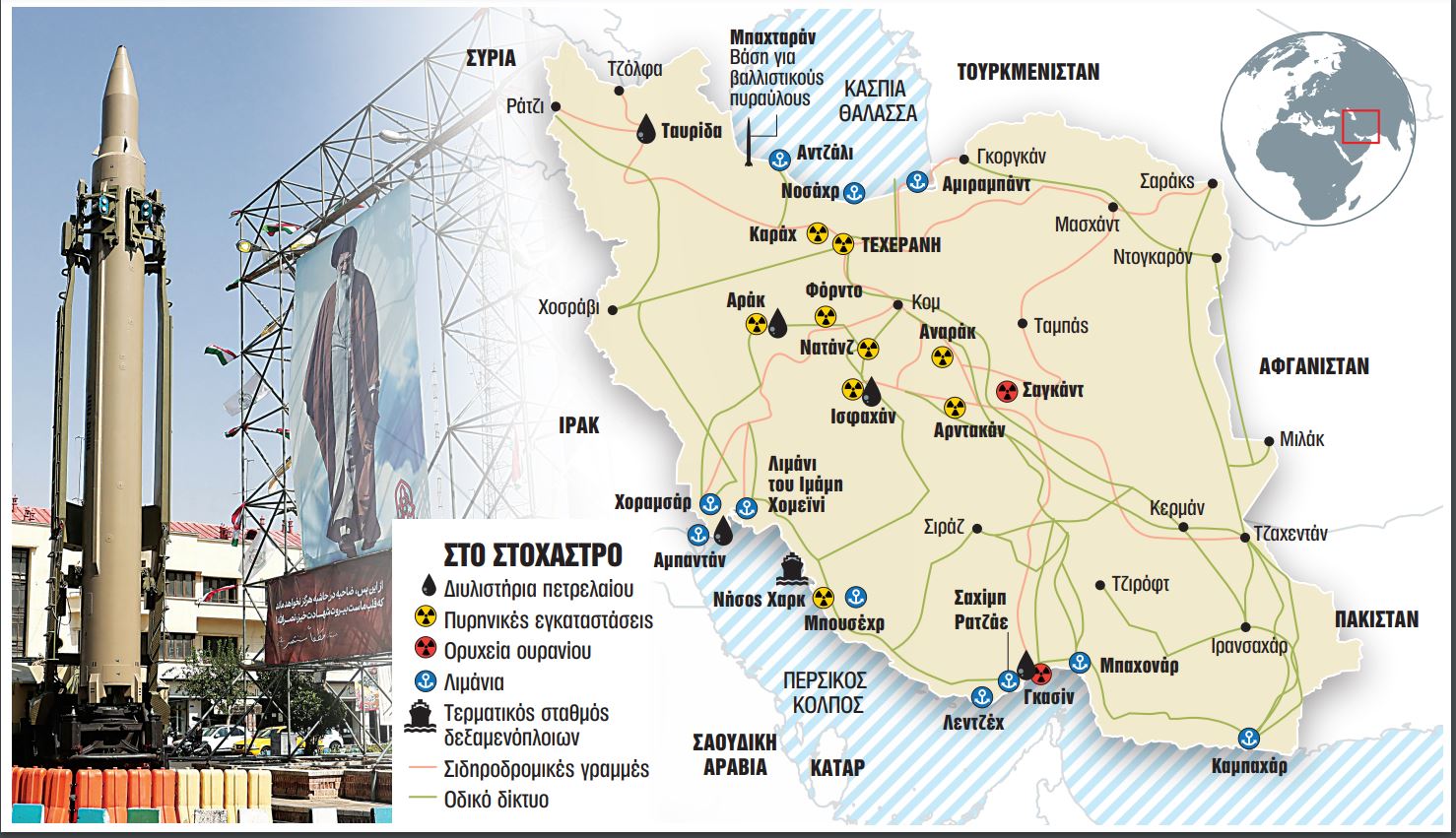1 O Νετανιάχου έχει εδώ και καιρό ταχθεί υπέρ του βομβαρδισμού των τοποθεσιών όπου γίνεται εμπλουτισμός ουρανίου στο Ιράν και όπου διεξάγονται έρευνες για το πυρηνικό του πρόγραμμα. Ωστόσο αυτές είναι διασκορπισμένες σε όλη τη χώρα, βαθιά κάτω από τη γη. Για να προκληθούν σημαντικές ζημιές θα απαιτούνταν μεγάλος αριθμός συγκεκριμένων, αμερικανικής κατασκευής, πυραύλων, που θα εκτοξευθούν από δεκάδες αεροσκάφη τα οποία θα έπρεπε να πετάξουν 1.200 χιλιόμετρα μακριά από το Ισραήλ.