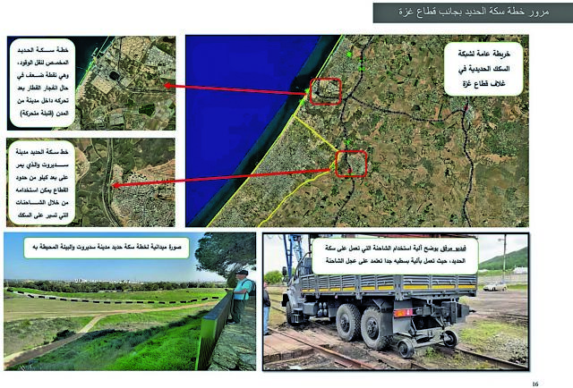 Αλλά η Χαμάς προφανώς δεν είχε βρει ακριβώς πώς θα μπορούσαν να γκρεμιστούν τα κτίρια. «Προσπαθούμε να βρούμε έναν μηχανισμό για την καταστροφή του πύργου», ανέφερε. Ενας πιο πρακτικός στόχος, πίστευε, ήταν το ισραηλινό σιδηροδρομικό σύστημα. Τα έγγραφα περιγράφουν διάφορες παραλλαγές ενός σχεδίου χρήσης σιδηροδρόμων για τη μεταφορά μαχητών και ισχυρών εκρηκτικών – συμπεριλαμβανομένων βυτιοφόρων καυσίμων που θα μπορούσαν να πυροδοτηθούν με μικρές βόμβες – στη μεγαλύτερη πόλη του Ισραήλ. Ο ίδιος φάκελος περιλαμβάνει μια εικονογραφημένη παρουσίαση, καθώς και επιστολές της Χαμάς προς τους κορυφαίους ηγέτες του Ιράν το 2021 με αίτημα εκατοντάδες εκατομμύρια δολάρια σε χρηματοδότηση και εκπαίδευση για 12.000 επιπλέον μαχητές της Χαμάς – χωρίς να είναι σαφές αν το Ιράν γνώριζε για τα σχέδια ή αν απάντησε στις επιστολές.