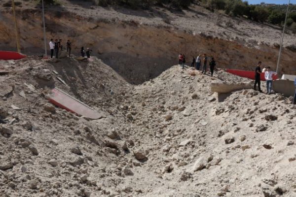 Άνθρωποι στέκονται στο σημείο ισραηλινής επίθεσης, εν μέσω διασυνοριακών εχθροπραξιών μεταξύ Χεζμπολάχ και Ισραήλ, στο συνοριακό πέρασμα Masnaa με τη Συρία, στο Λίβανο, 4 Οκτωβρίου 2024.