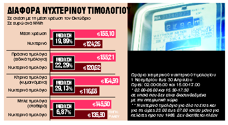 Σε ισχύ από την 1 Νοεμβρίου, το νυχτερινό τιμολόγιο ηλεκτρικού ρεύματος, το οποίο προσφέρει στους χρήστες του οικονομία περίπου 20% για τις ώρες που χρησιμοποιείται.