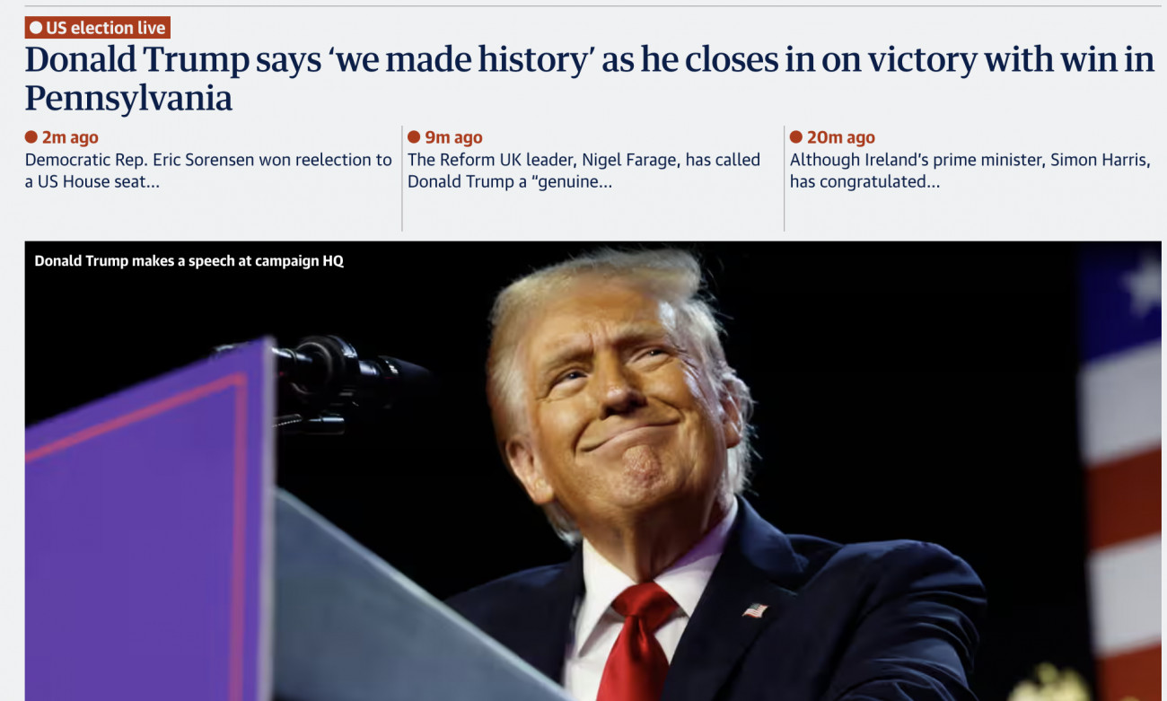 Guardian: Ο Ντόναλντ Τραμπ λέει ότι «γράψαμε ιστορία» καθώς πλησιάζει σε νίκη στην Πενσυλβάνια