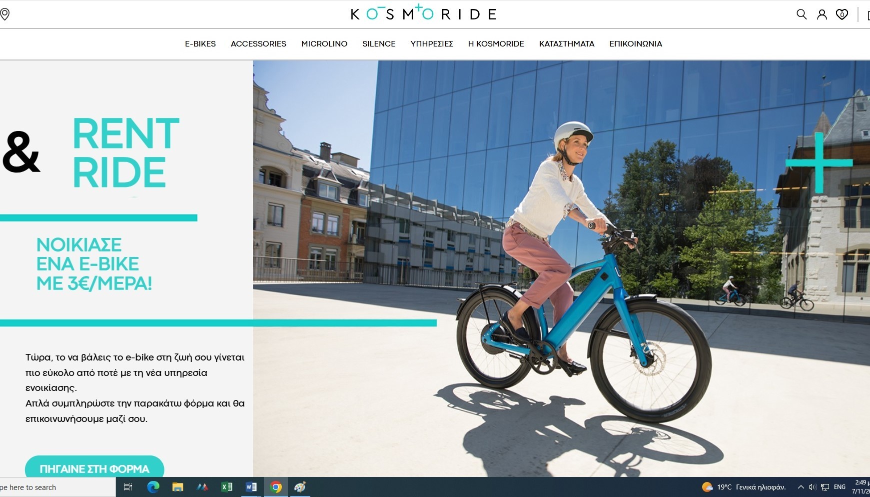 Εκτός από αγορά όμως η Κοsmoride προσφέρει τη δυνατότητα ενοικίασης υψηλής ποιότητας e-bike για τις καθημερινές μετακινήσεις των πολιτών σε ημερήσια, εβδομαδιαία ή μηνιαία βάση. Το κόστος ενοικίασης – όπως αναφέρει η εταιρεία στην ιστοσελίδα της – ξεκινάει από 3€/μέρα, ανάλογα με τη διάρκεια ενοικίασης.