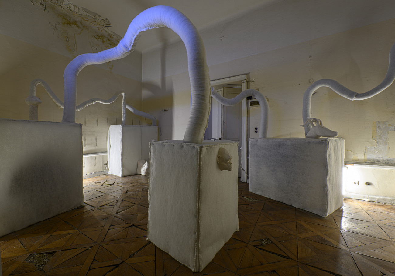 Οι μεγάλες αίθουσες, τα μικρότερα δωμάτια, οι διάδρομοι και τα διάφορα περάσματα συγκροτούν μια συνειδησιακή ροή και μια συναισθηματική διαδρομή.