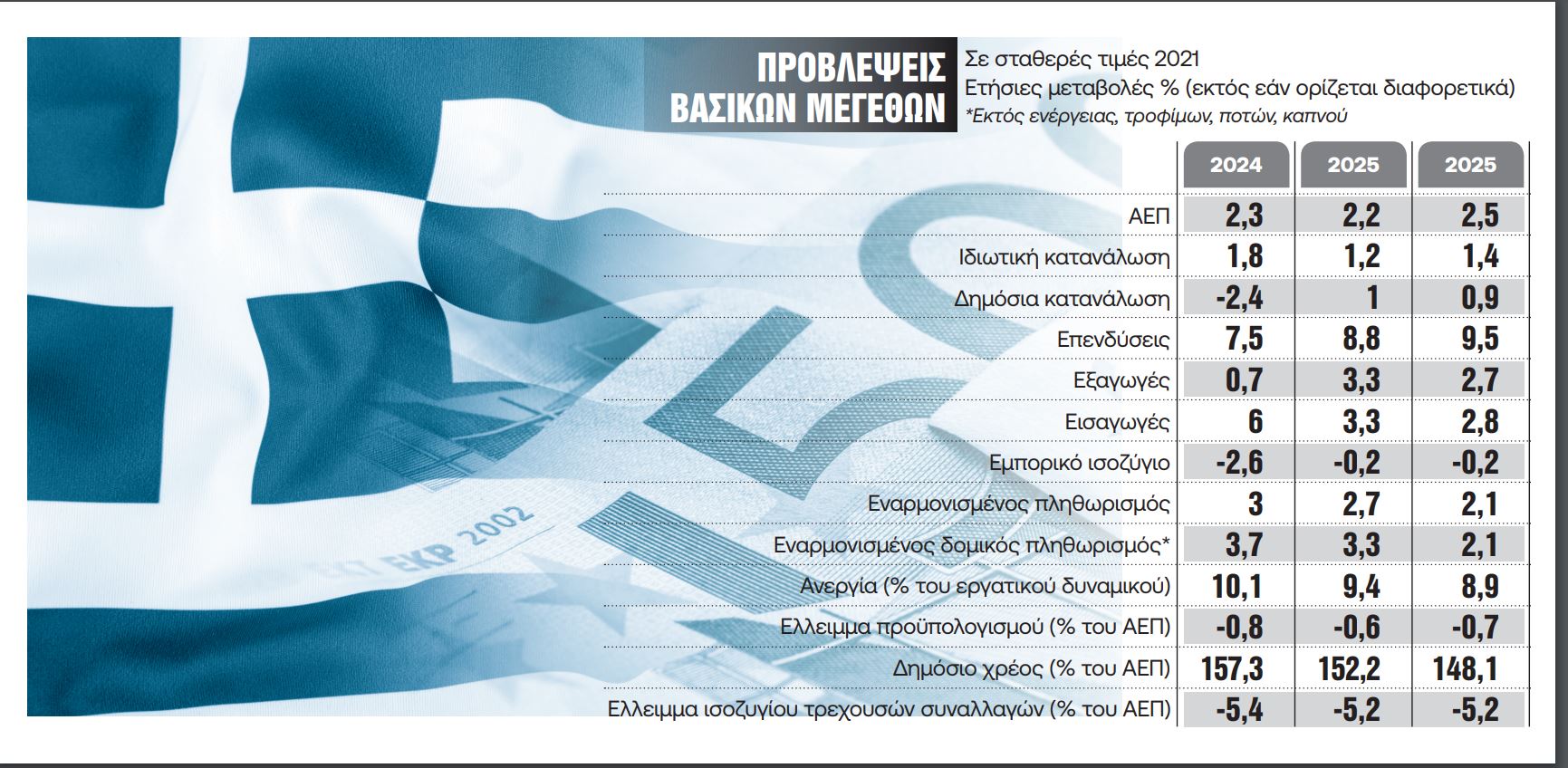 Ωστόσο, η βιωσιμότητα του χρέους εξαρτάται άμεσα από τη διατήρηση υψηλών πρωτογενών πλεονασμάτων, που προβλέπονται στο 2,4% του ΑΕΠ τόσο για το 2025 όσο και για το 2026.