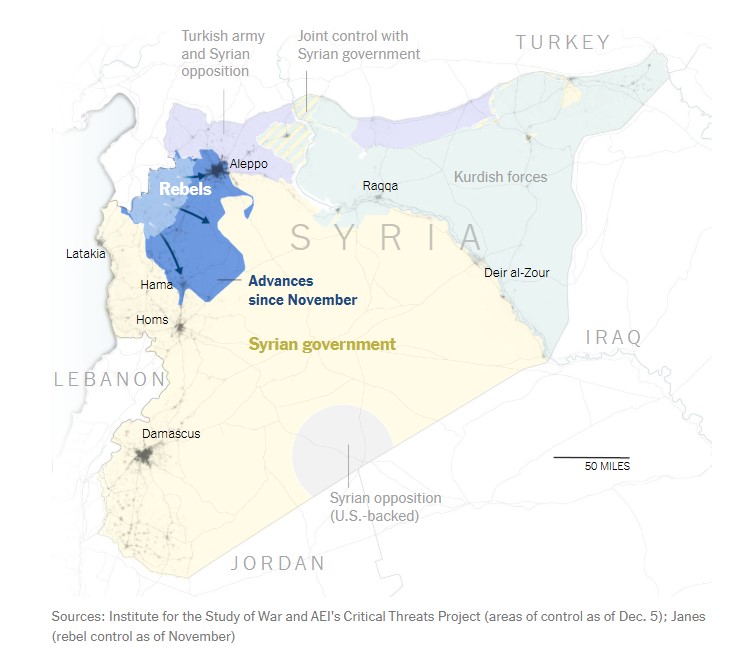 Σε λίγο περισσότερο από μια εβδομάδα, οι δυνάμεις των συριακών ανταρτών έχουν καταλάβει μεγάλο μέρος της βορειοδυτικής Συρίας από την κυβέρνηση σε μια γρήγορη επίθεση, ανατρέποντας τον άλλοτε στάσιμο εμφύλιο πόλεμο.