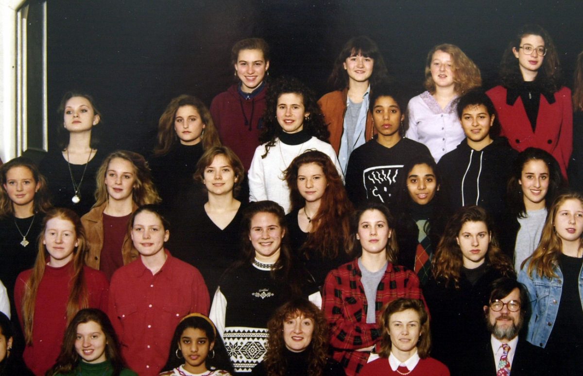 Η Ασμά αλ Άσαντ -με τη λευκή μπλούζα τρίτη από αριστερά, στη 2η σειρά από πάνω- σε σχολική φωτογραφία. (Φωτογραφία: EPA)