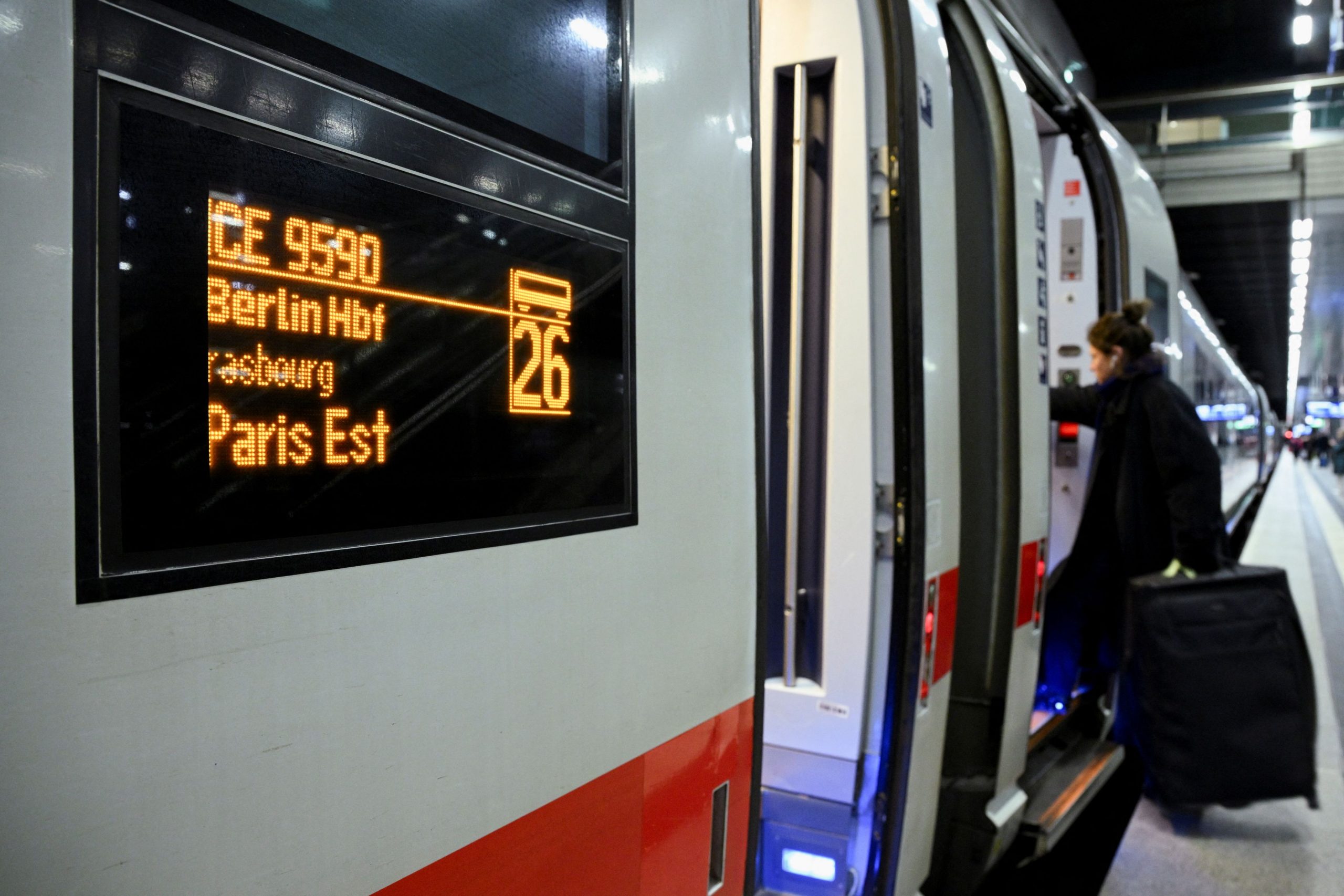 Ωστόσο ο ερυθρόλευκος συρμός δεν είναι ένα γαλλικό TGV αλλά η γερμανική του εκδοχή (ICE) μετά τη σύμπραξη της γαλλικής με τη γερμανική εθνική εταιρεία σιδηροδρόμων (Deutsche Bahn). Το ταξίδι παραμένει μεγάλο αφού διαρκεί λίγο πάνω από 8 ώρες.