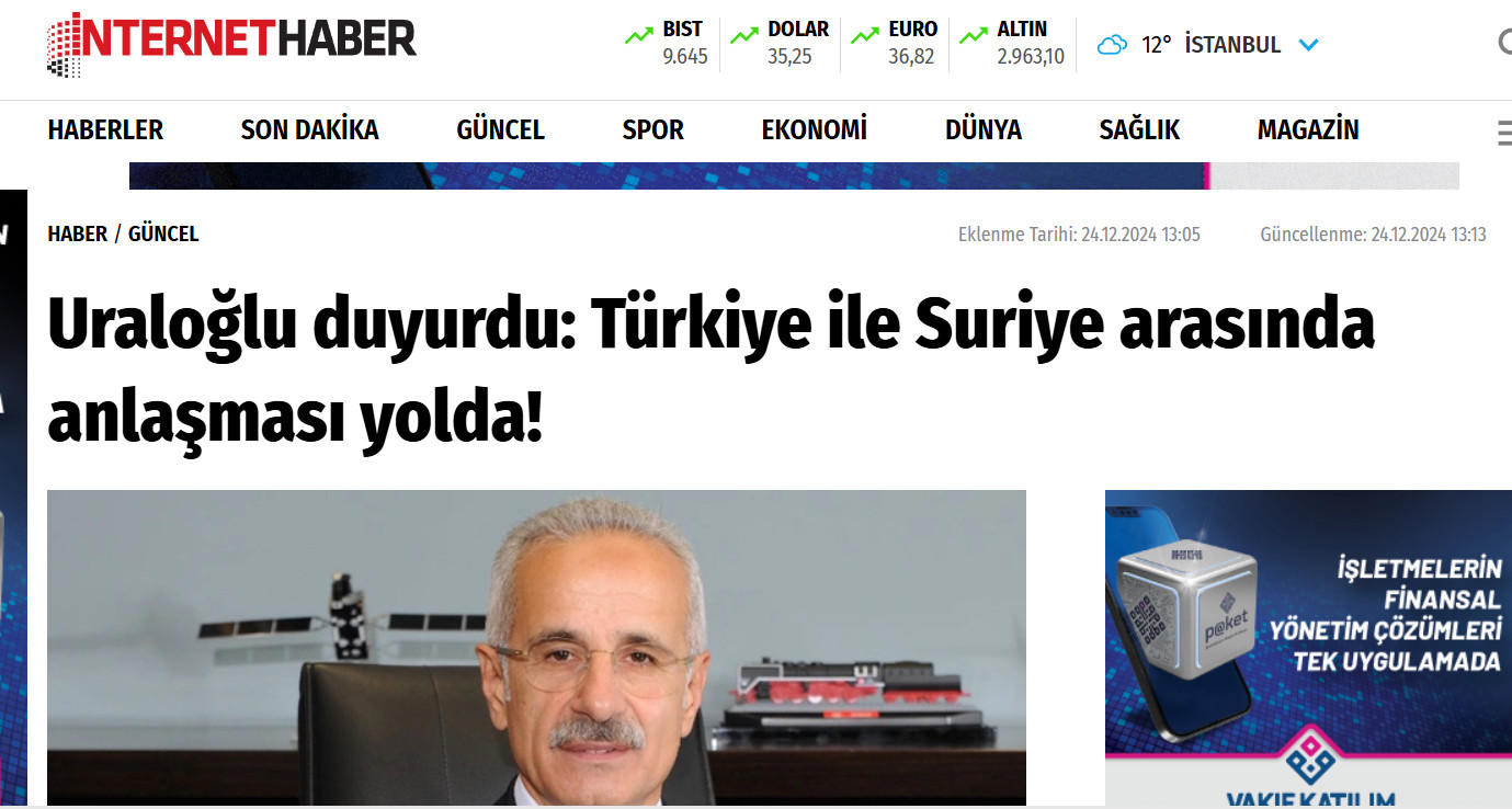 Πιο συγκεκριμένα όπως μεταδίδει ο ανταποκριτής του TGRT News στην Άγκυρα, Φατίχ Ατίκ, ο τούρκος υπουργός Μεταφορών και Υποδομών, Αμπτουλκαντίρ Ουράλογλου, αναφέρθηκε στις συμφωνίες που θα γίνουν μετά την ανατροπή του καθεστώτος Μπασάρ αλ Άσαντ στη Συρία.