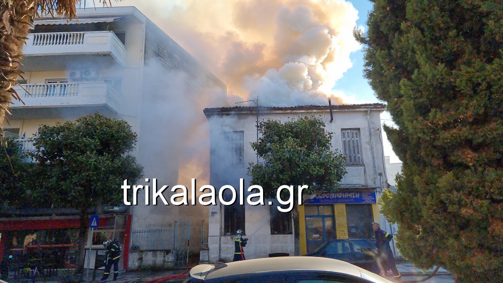 Στάχτη έγινε το εσωτερικό του ισογείου και του πρώτου ορόφου, αλλά και της σκεπής παλιάς μονοκατοικίας, που βρίσκεται απέναντι ακριβώς από τον Μητροπολιτικό Ιερό Ναό του Αγίου Νικολάου στα Τρίκαλα.