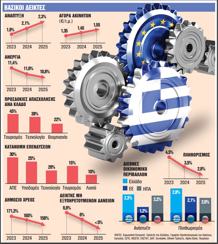 Το 2025 αναμένεται να είναι μια χρονιά – ορόσημο για την ελληνική οικονομία, σηματοδοτώντας μια σημαντική στροφή σε σχέση με το 2024.