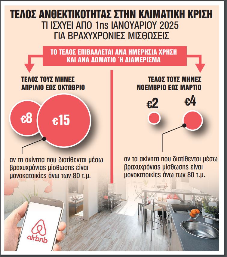 Από 1ης Ιανουαρίου 2024 και εφεξής, ως βραχυχρόνια μίσθωση ορίζεται η μίσθωση ή υπεκμίσθωση ακινήτου διάρκειας έως και 59 ημερών, εφόσον τα ακίνητα εκμισθώνονται επιπλωμένα χωρίς την παροχή οποιασδήποτε υπηρεσίας πλην των κλινοσκεπασμάτων.
