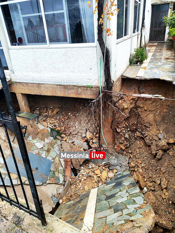 Η Πυροσβεστική χρειάστηκε νωρίς το πρωί να απεγκλωβίσει μια γυναίκα από το σπίτι της, το οποίο υπέστη σοβαρές ζημιές, όπως φαίνεται από τις φωτογραφίες, όταν κατέρρευσε η αυλή της. Για καλή της τύχη, η γυναίκα δεν βγήκε από το σπίτι, αλλιώς κινδύνευε να βρεθεί στο κενό.