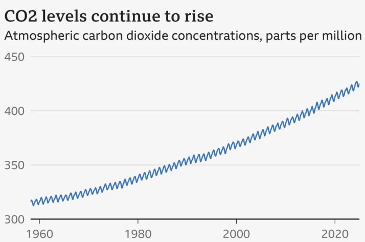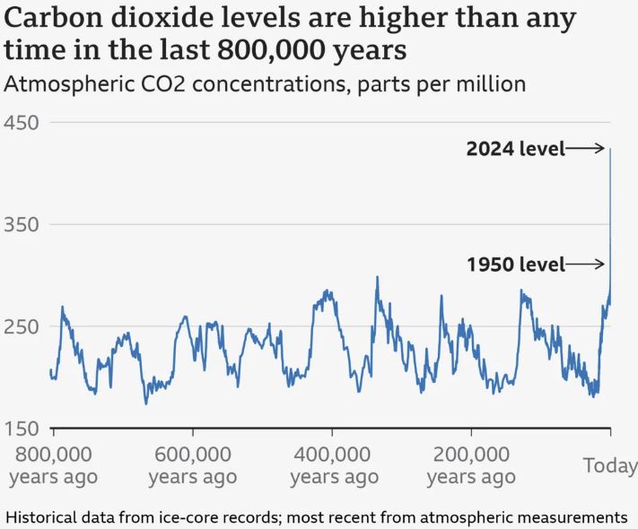 Στα ύψη του διοξείδιο του άνθρακα το 2024 Πηγή: BBC