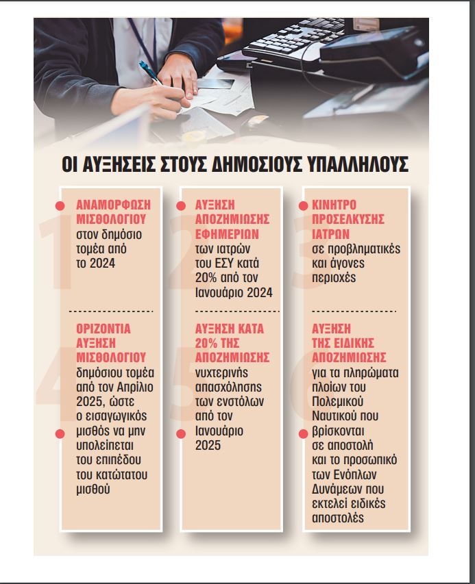 Η αύξηση θα είναι επιπρόσθετη όλων των άλλων αυξήσεων που έχουν ήδη ανακοινωθεί και δρομολογηθεί στο Δημόσιο, για φέτος και τα επόμενα χρόνια.