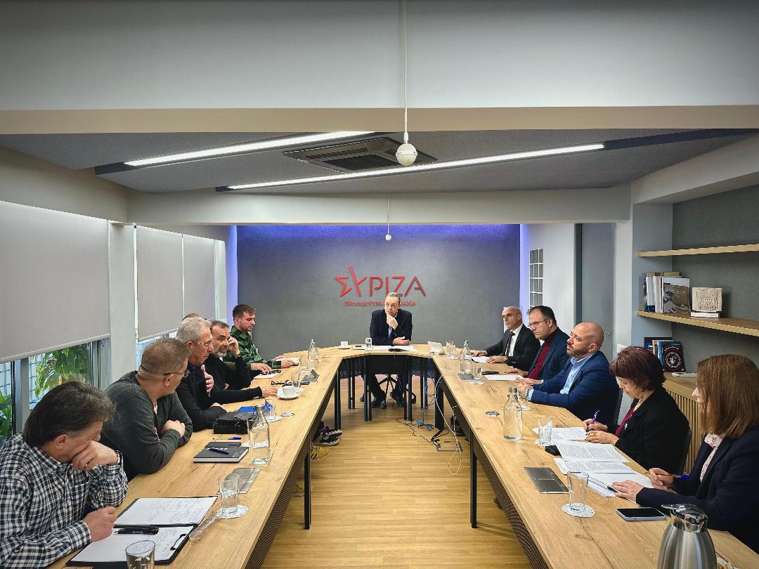 Ο Σωκράτης Φάμελλος και στελέχη του ΣΥΡΙΖΑ με εκπροσώπους των σωματείων εργαζομένων της Hellenic Train
