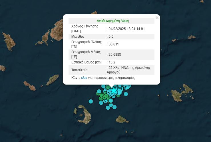 Σεισμός εντάσεως 5 της κλίμακας Ρίχτερ σημειώθηκε στις 15:04 με επίκεντρο 22 χλμ νότια,νοτιοδυτικά της Αρκεσίνης Αμοργού.
