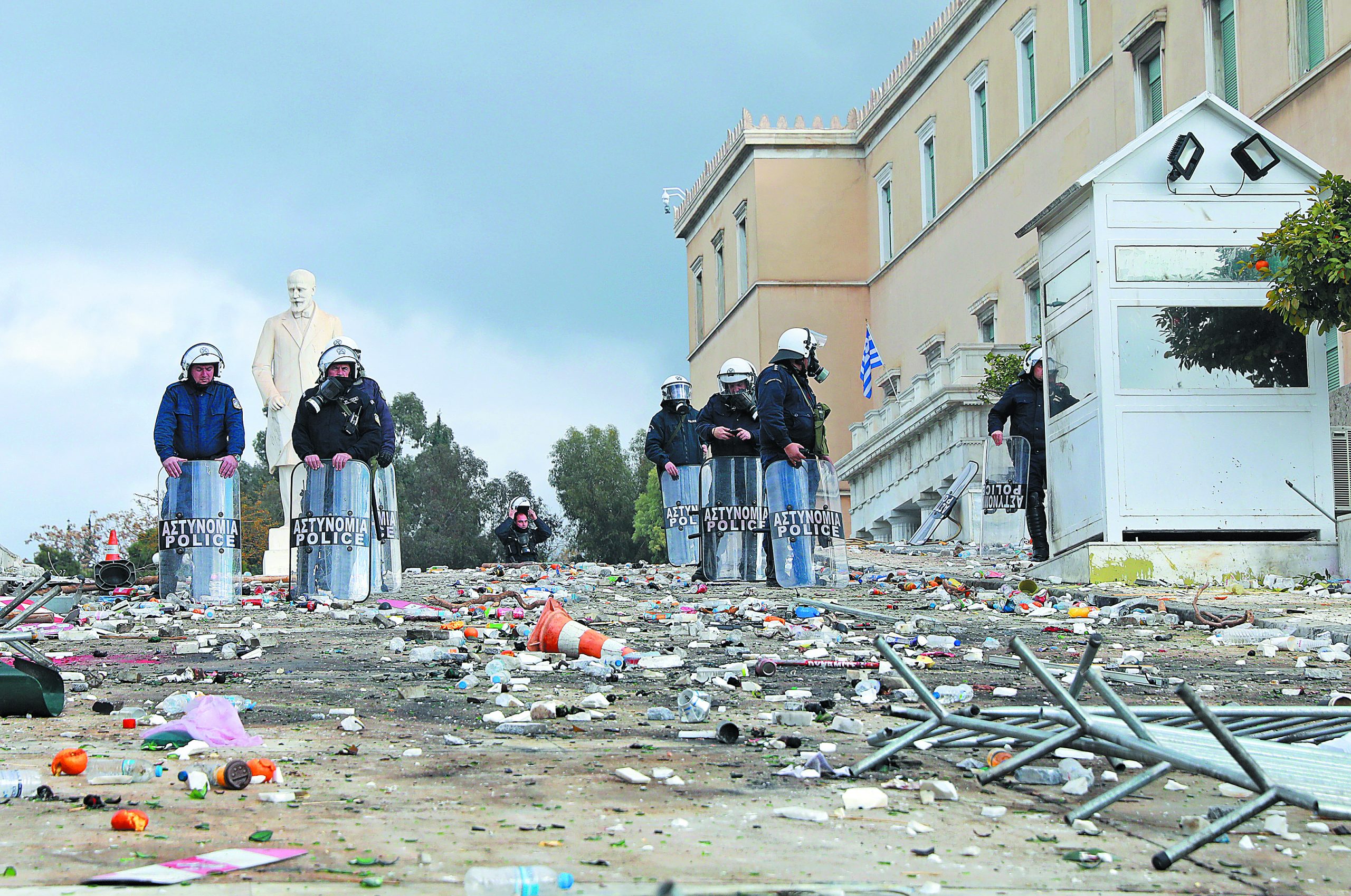 Και όμως αυτό δεν συνέβη, καθώς επεισόδια προκλήθηκαν στο κέντρο της Αθήνας αμέσως μετά το τέλος των ομιλιών και ενώ οι διαδηλωτές βρίσκονταν ακόμη στο Σύνταγμα. Και είναι απορίας άξιο πώς έγιναν τέτοια εκτεταμένα και σοβαρά επεισόδια με κουκουλοφόρους, μολότοφ και πετροπόλεμο όχι μόνο στο Σύνταγμα αλλά και σε πολλούς άλλους δρόμους, όταν τις προηγούμενες ημέρες ο υπουργός Προστασίας του Πολίτη, Μιχάλης Χρυσοχοΐδης, διαβεβαίωνε πως «η Αστυνομία έχει μία σαφή, καθαρή εντολή: να διαφυλάξει την ασφάλεια των διαδηλωτών και την ασφαλή διεξαγωγή των διαδηλώσεων»…