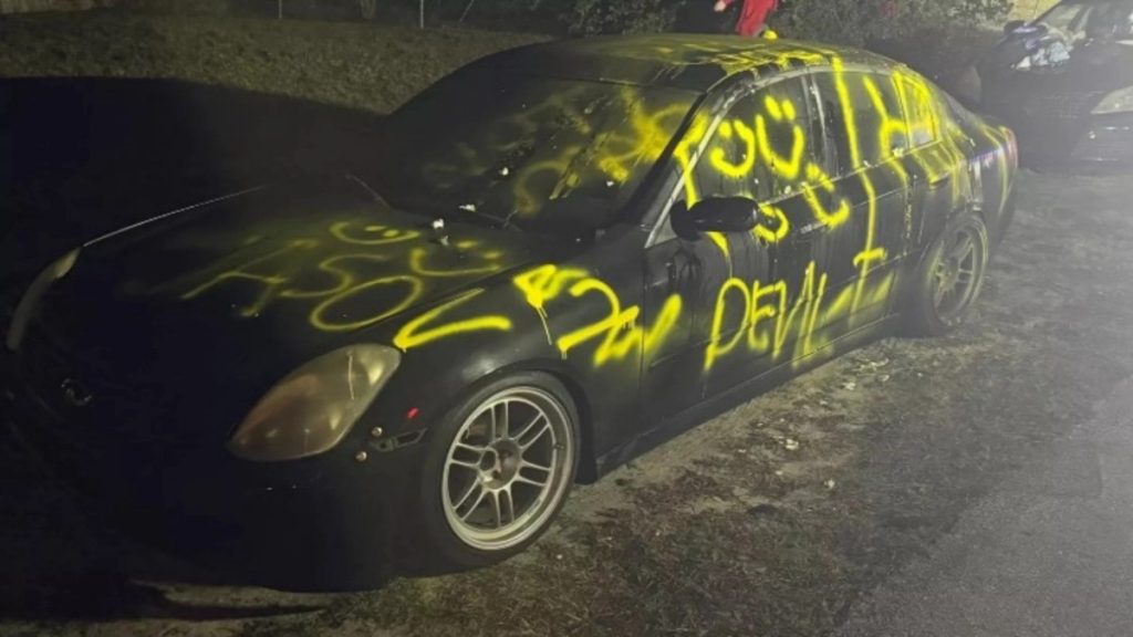 Ναι, σωστά διάβασες. Αντί για το αυτοκίνητο του πρώην της, έκανε την καλλιτεχνική της παρέμβαση στο όχημα ενός εντελώς αθώου γείτονα, ο οποίος μάλλον έμεινε άναυδος το επόμενο πρωί βλέποντας το αυτοκίνητό του να μοιάζει με αφίσα πανκ συναυλίας.