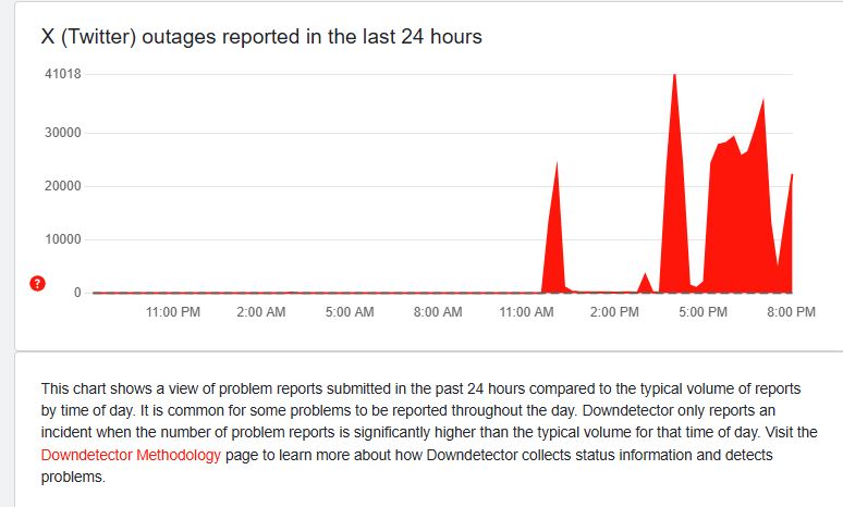 Σύμφωνα με τον εξειδικευμένο ιστότοπο Downdetector, που καταγράφει τα προβλήματα πρόσβασης βασιζόμενος σε αναφορές χρηστών, γύρω στη 1.14 (ώρα ανατολικών ΗΠΑ, 19.14 ώρα Ελλάδας) περίπου 10.700 χρήστες δεν είχαν πρόσβαση στην πλατφόρμα.