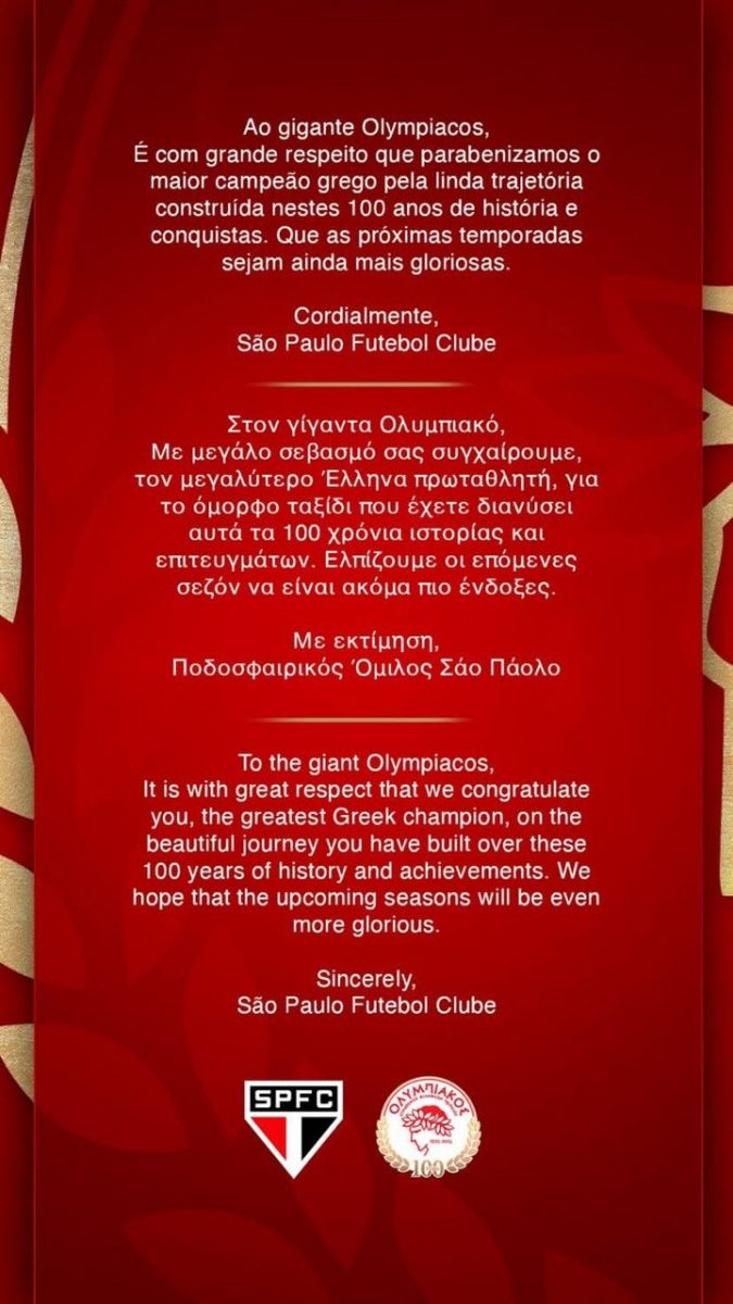 Με μεγάλο σεβασμό σας συγχαίρουμε, τον μεγαλύτερο Έλληνα πρωταθλητή, για το όμορφο ταξίδι που έχετε διανύσει αυτά τα 100 χρόνια ιστορίας και επιτευγμάτων. Ελπίζουμε οι επόμενες σεζόν να είναι ακόμα πιο ένδοξες.