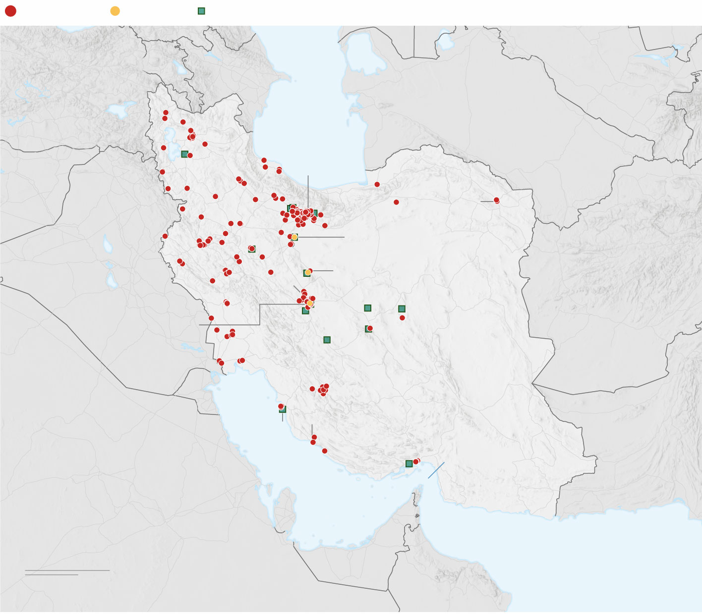 Περιοχές του Ιράν που χτυπήθηκαν από το Ισραήλ και τις ΗΠΑ από τις 13 Ιουνίου.