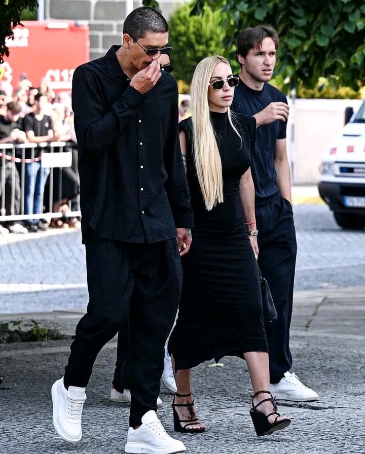 Diogo Jota’s wife, Rute Cardoso, breaks down in tears as she helps carry his coffin at his funeral in Gondomar. 💔