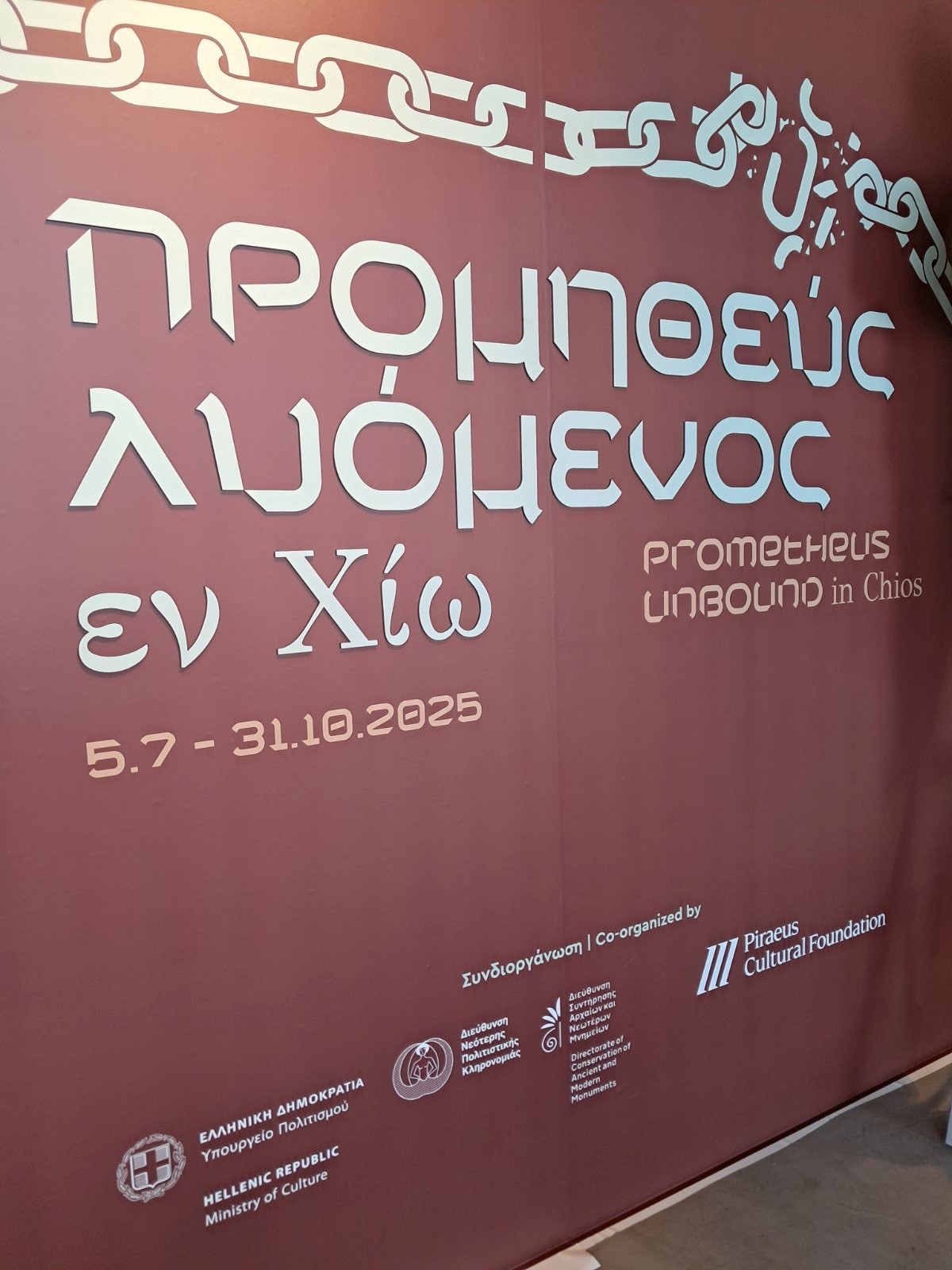 Η έκθεση του πίνακα του Καρλ Μπλοχ «Προμηθεύς Λυόμενος» στο Μουσείο Μαστίχας Χίου αποτελεί συνδιοργάνωση του Πολιτιστικού Ιδρύματος Ομίλου Πειραιώς, της Διεύθυνσης Νεότερης Πολιτιστικής Κληρονομιάς και της Διεύθυνσης Συντήρησης Αρχαίων και Νεωτέρων Μνημείων του Υπουργείου Πολιτισμού. Έως τις 31 Οκτωβρίου 2025.