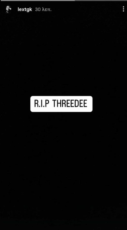Τη θλίψη του για την απώλεια του Τρισδιάστατου εξέφρασε με συγκίνηση και ο ΛΕΞ, ανεβάζοντας λιτό αλλά φορτισμένο story στον προσωπικό του λογαριασμό στο Instagram. Το κοινό και οι καλλιτέχνες τον αποχαιρετούν με σεβασμό, μιλώντας για έναν σεμνό και αυθεντικό άνθρωπο, που δεν αναζητούσε φώτα αλλά επηρέασε γενιές.