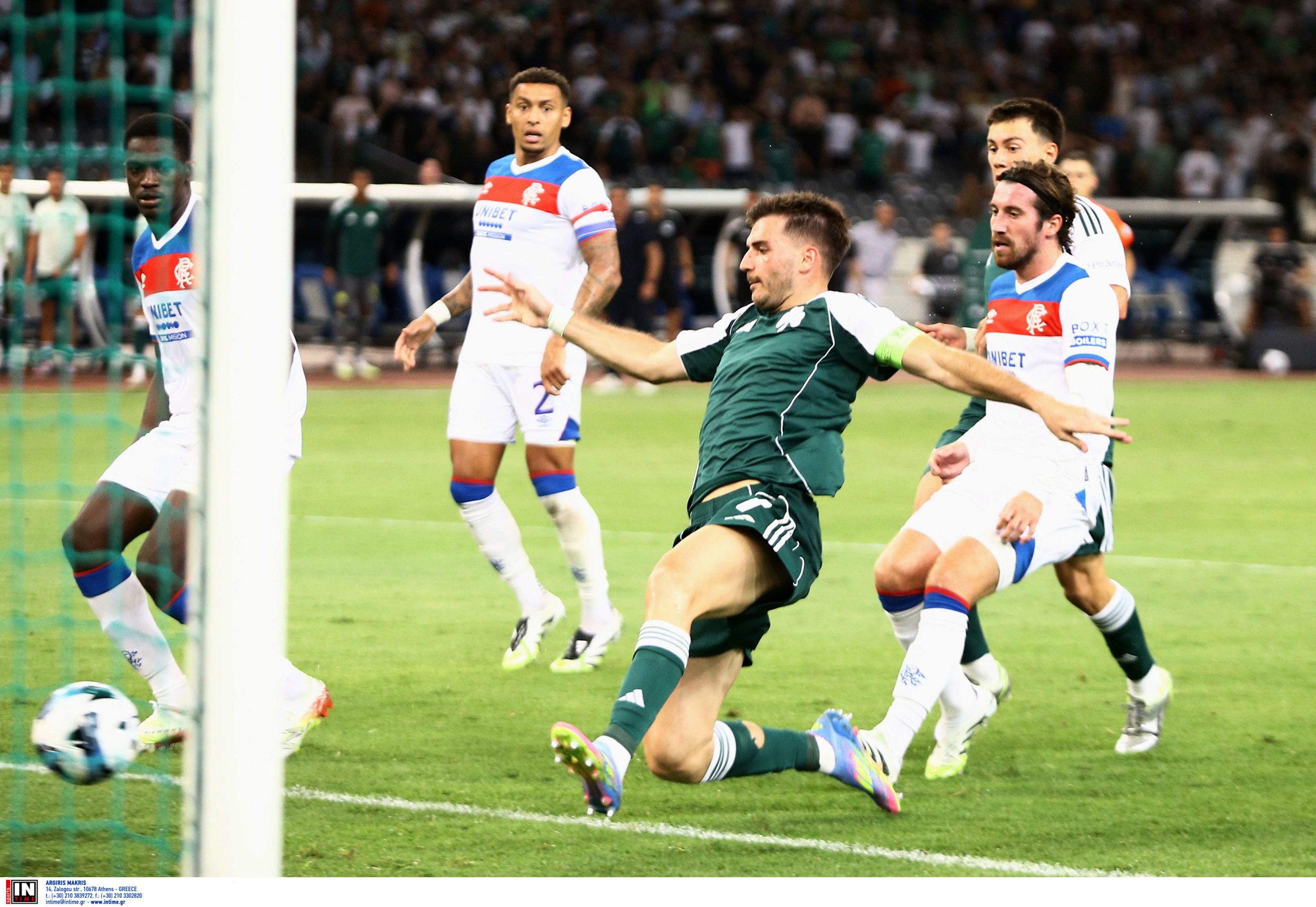 Ο Παναθηναϊκός μπήκε δυναμικά στον αγωνιστικό χώρο του Ολυμπιακού Σταδίου και απείλησε μόλις στο 5ο λεπτό με ένα δυνατό σουτ του Μπακασέτα, το οποίο πέρασε λίγο άουτ. Δύο λεπτά αργότερα, στο 7′, ο Πελίστρι έκανε επικίνδυνο γύρισμα στην περιοχή, όμως οι αμυντικοί των Ρέιντζερς απομάκρυναν.