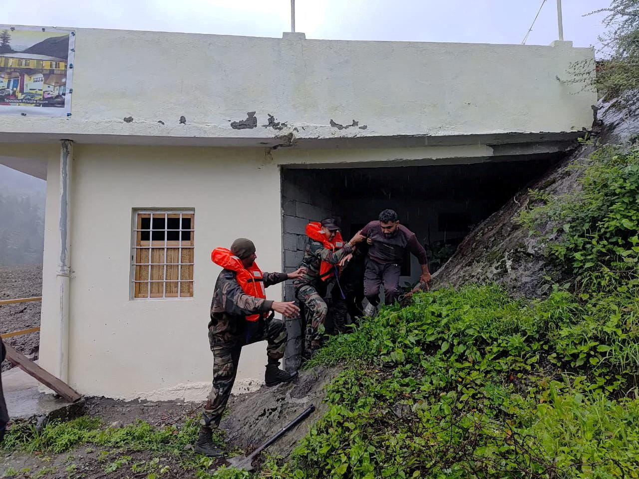 Οι ινδικές ένοπλες δυνάμεις ανέφεραν πως σχεδόν 150 στρατιώτες αναπτύχθηκαν στο Νταράλι και βοήθησαν στη διάσωση περίπου 20 εγκλωβισμένων. Ένα μεγάλο τμήμα της κοινότητας έχει βυθιστεί στη λάσπη, η οποία φθάνει στις στέγες των σπιτιών σε ορισμένα σημεία.