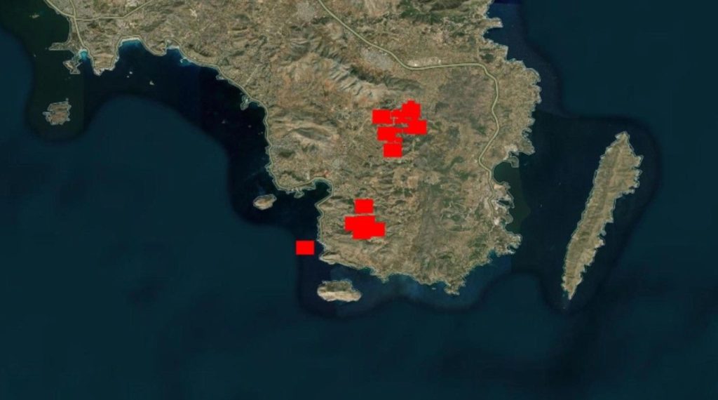 Ο δορυφορικός χάρτης της NASA με τις φωτιές στην Νοτιοανατολική Αττική
