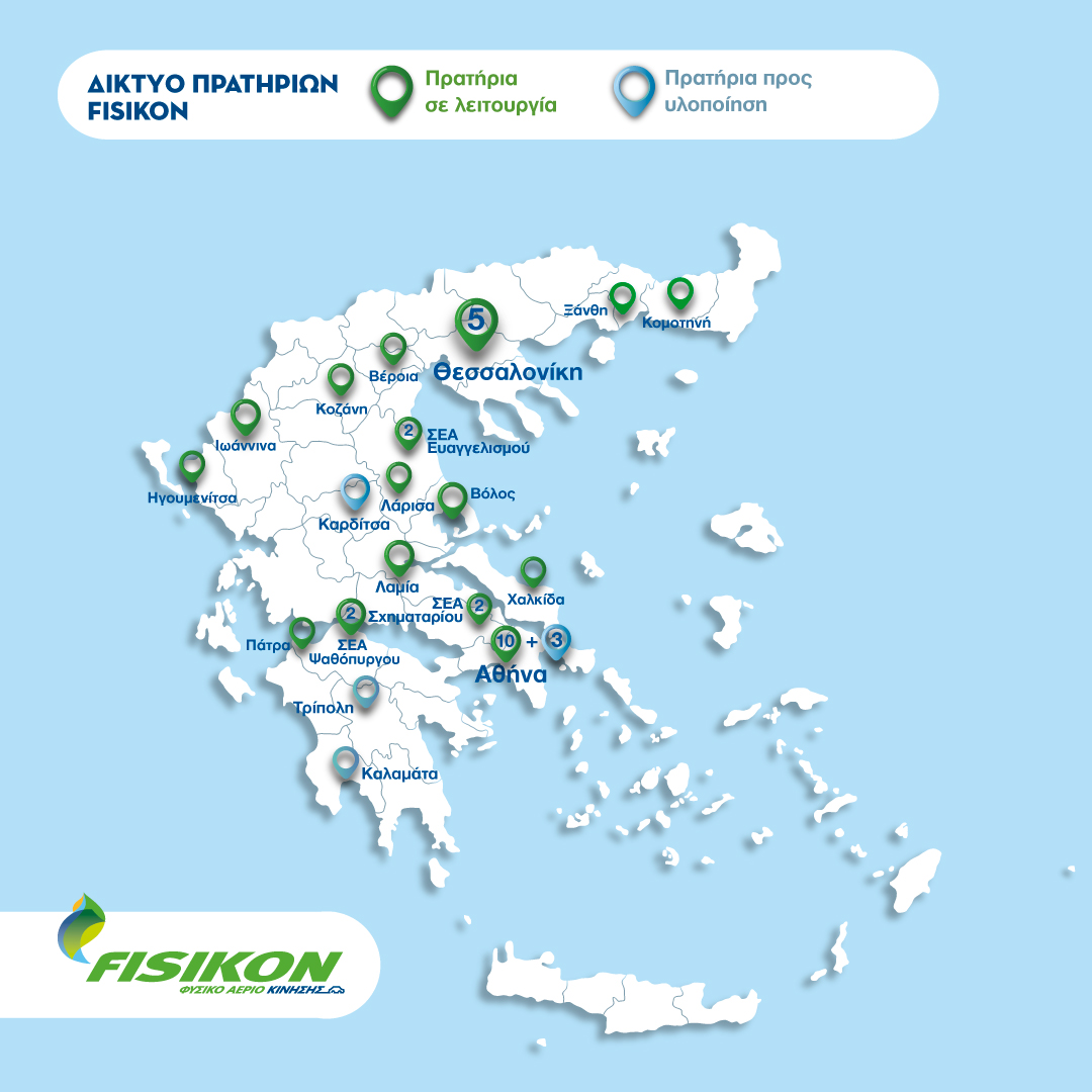 FISIKON: Δίκτυο 32 Πρατηρίων CNG σε όλη τη χώρα