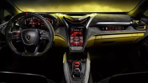 Η καμπίνα του Lamborghini Fenomeno αντικατοπτρίζει τη φιλοσοφία «Νιώστε σαν πιλότος», δημιουργώντας μια βαθιά σύνδεση μεταξύ πιλότου και οχήματος χάρη στη θέση οδήγησης και την αγωνιστική «μορφή» του τιμονιού. Τρεις ψηφιακές οθόνες έχουν εξαλείψει την ανάγκη για φυσικά κουμπιά, προσφέροντας μεγαλύτερο στυλιστικό μινιμαλισμό.