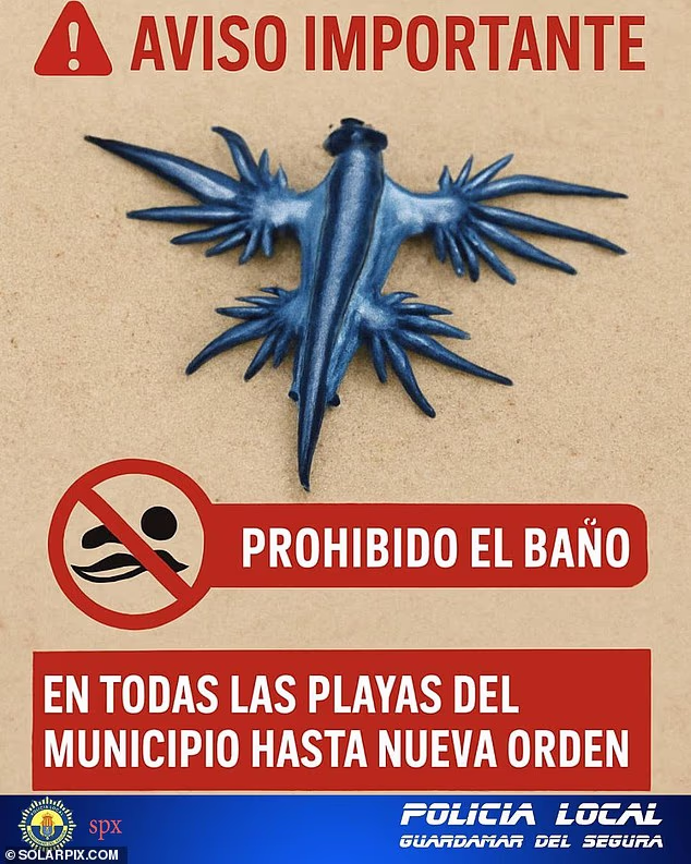 Προειδοποιητικές σημαίες υψώθηκαν στις παραλίες του δήμου Γκουαρνταμάρ ντελ Σεγκούρα, βόρεια της Τορεβιέχα, μετά την εμφάνιση των λεγόμενων μπλε δράκων, οι οποίοι έχουν χαρακτηριστεί ως «ο πιο όμορφος δολοφόνος στον ωκεανό».