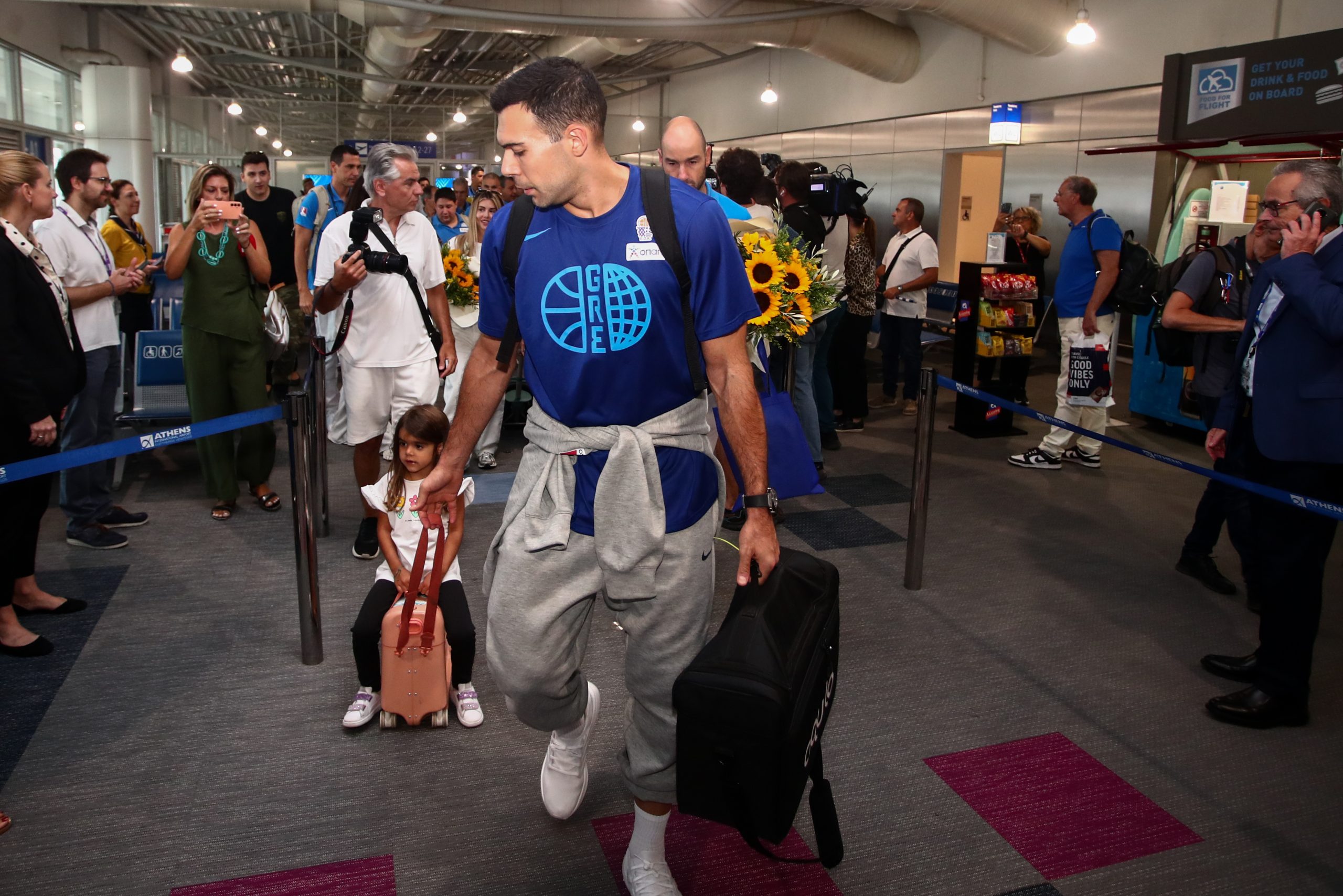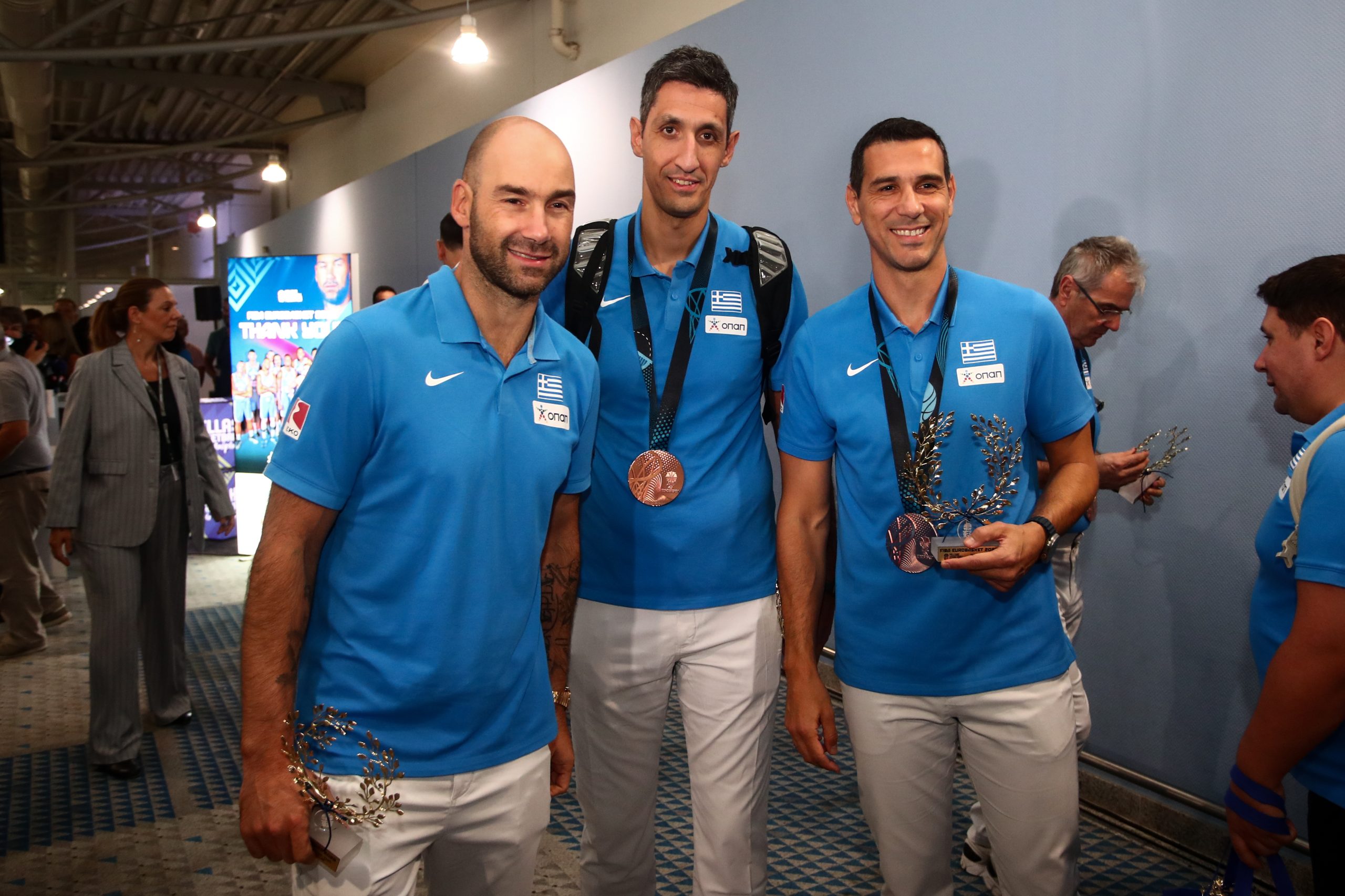 Με το χάλκινο μετάλλιο του EuroBasket στις αποσκευές της προσγειώθηκε στο αεροδρόμιο «Ελευθέριος Βενιζέλος» η Εθνική Ελλάδας. Πλήθος κόσμου συγκεντρώθηκε για τη θερμή υποδοχή των παικτών.