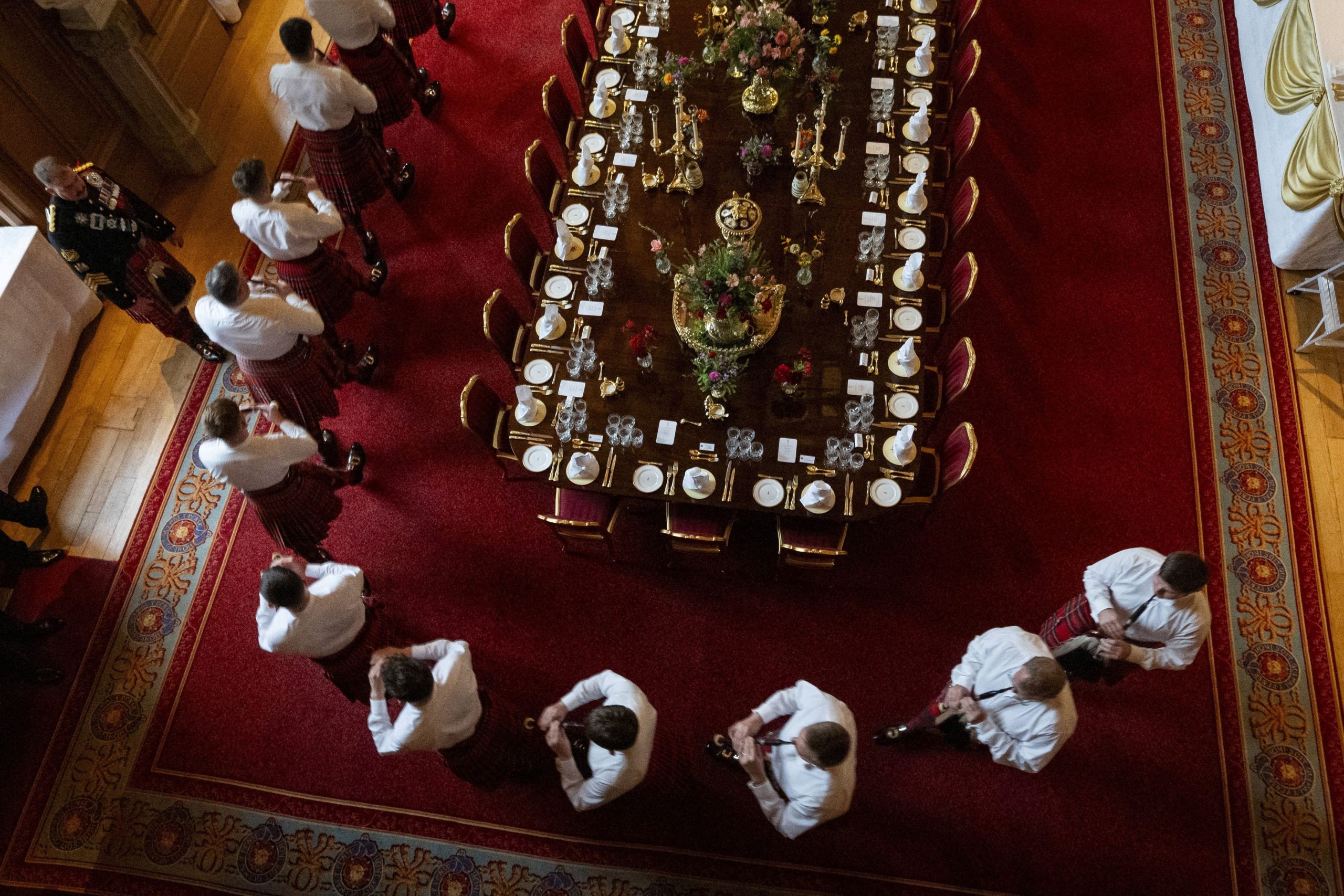 Η «κεφαλή» του τραπεζιού στο κρατικό δείπνο του Ουίνδσορ βρίσκεται στο μέσο, με τον βασιλιά και τον πρόεδρο στο κέντρο ενός τραπεζιού μήκους 47 μέτρων.
